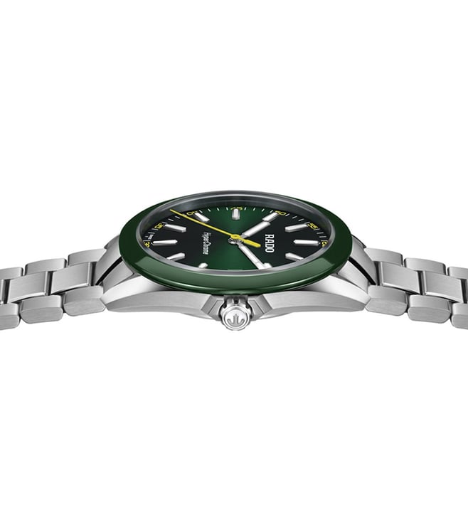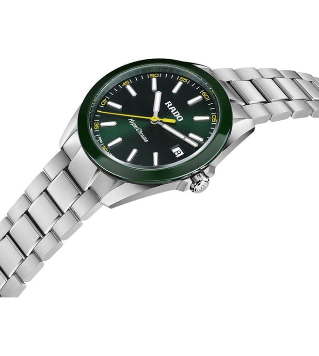 Introducing the RADO HyperChrome Quartz Men's Watch, a sleek and sophisticated timepiece designed for the modern man. With a 41.5mm case size, this watch exudes style and elegance. The Swiss quartz movement ensures accurate timekeeping, while the scratch-resistant sapphire crystal and water resistance make it durable for everyday wear. The classic black dial and stainless steel bracelet add a timeless touch to any outfit. Elevate your look with the RADO HyperChrome Quartz Men's Watch - the perfect blend of luxury and functionality.