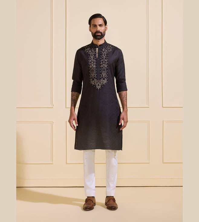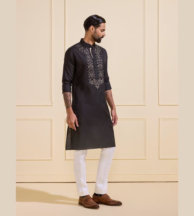 Raghavendra Rathore JodhpurRaghavendra Rathod Black Silk Comfort Fit Kurta