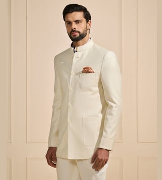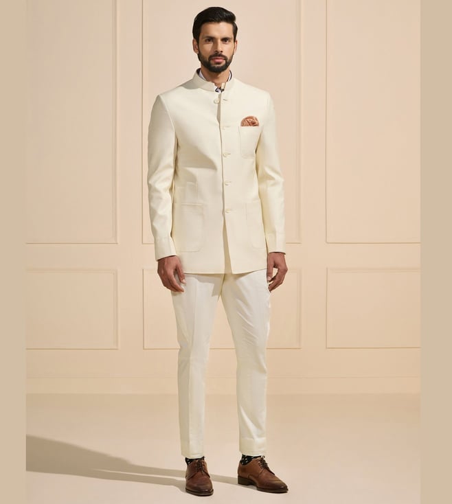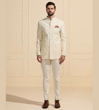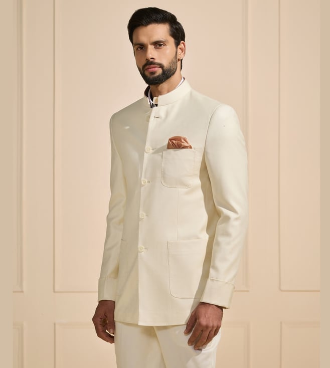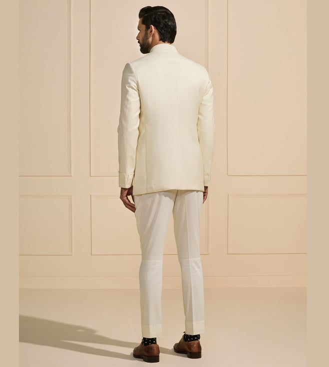 Raghavendra Rathore JodhpurRaghavendra Rathod Off White Suiting Comfort Fit Band Gala Jacket