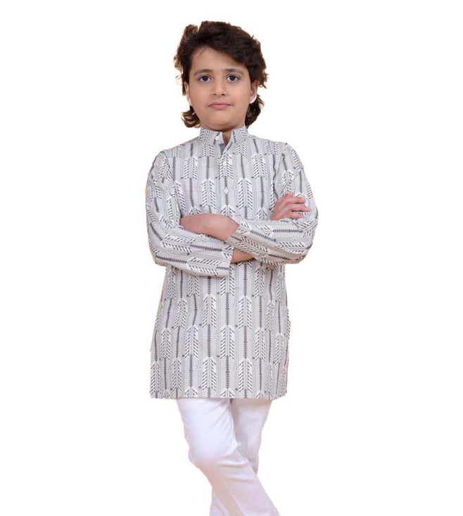RR Blue The Pintucked Butti Loop Button Kurta