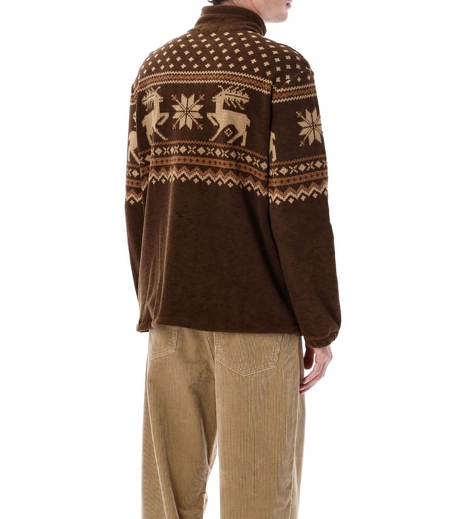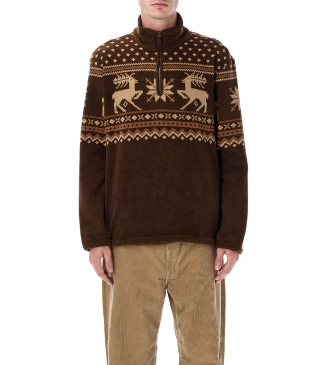 Embrace timeless elegance with the Ralph Lauren Brown Quarter-Zip Sweater, a masterpiece of style and comfort. Crafted for the discerning gentleman, this sweater features a sophisticated turtle neck and full sleeves, offering warmth and versatility. The rich brown hue is complemented by the iconic Ralph Lauren logo pattern, subtly woven into the premium polyester fabric. Perfect for any occasion, this sweater effortlessly combines classic design with modern flair, making it a must-have in every man's wardrobe.
