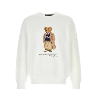 Elevate your style with the Ralph Lauren White Graphic Sweatshirt. Logo print to the front crew neck long sleeves ribbed cuffs and hem pullover.