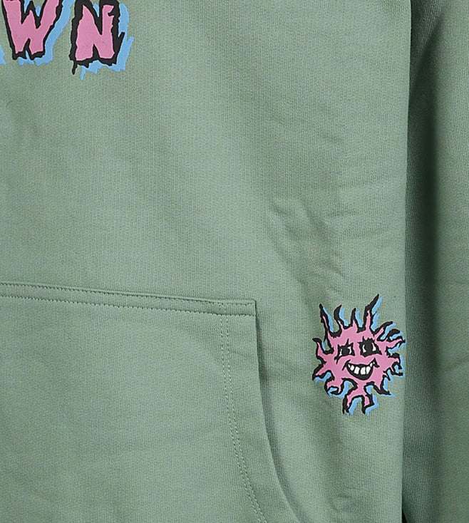Drawstring hood, long sleeves, front graphic print, ribbed cuffs and hem, kangaroo pocket, pullover.