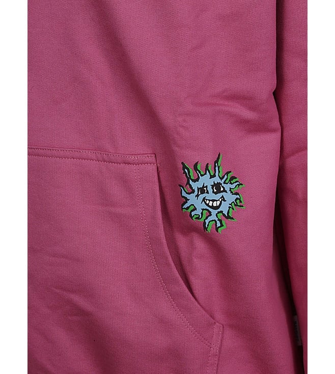 Elevate your style with the Rassvet Magenta Graphic Sweatshirt. Drawsytring hood, long sleeves, front logo, front print.