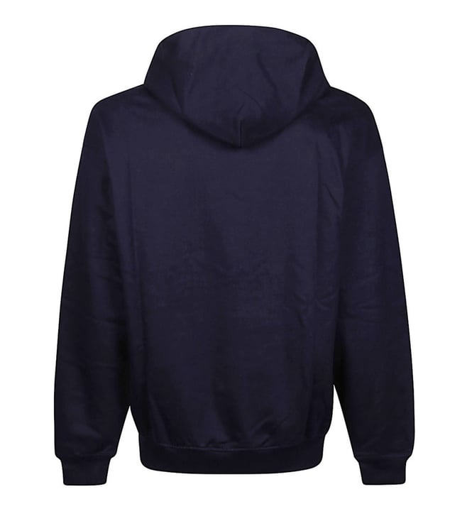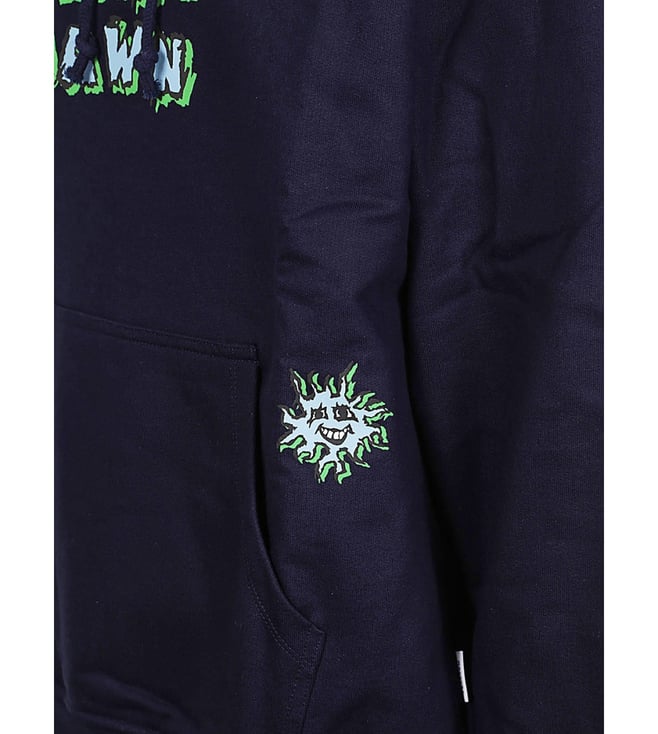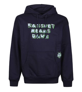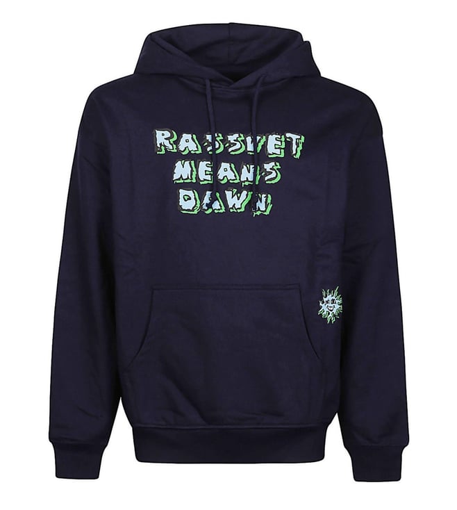 Elevate your style with the Rassvet Navy Graphic Sweatshirt. Drawsytring hood, long sleeves, front logo, front print.