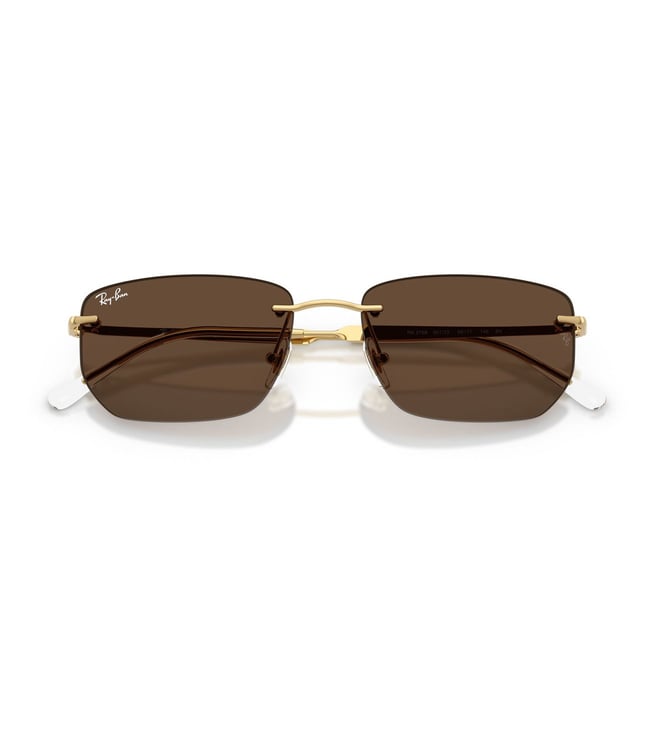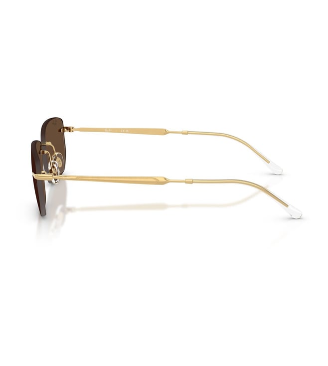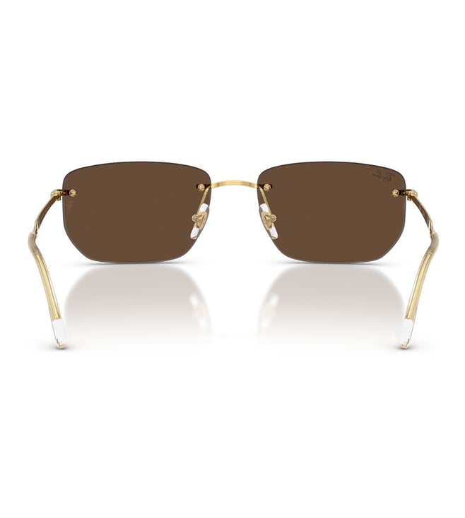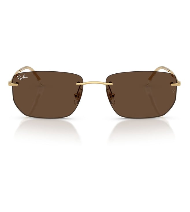 Fascinate everyone with your exquisite choice by donning this pair of Sunglasses from Ray-Ban. Fashioned from Metal, the lightweight frame vaunts a Gold hue. The Black lenses are crafted with care from Plastic that not only lends you a smart look but also assures complete protection of your eyes. The Rimless design further magnifies its overall charm.