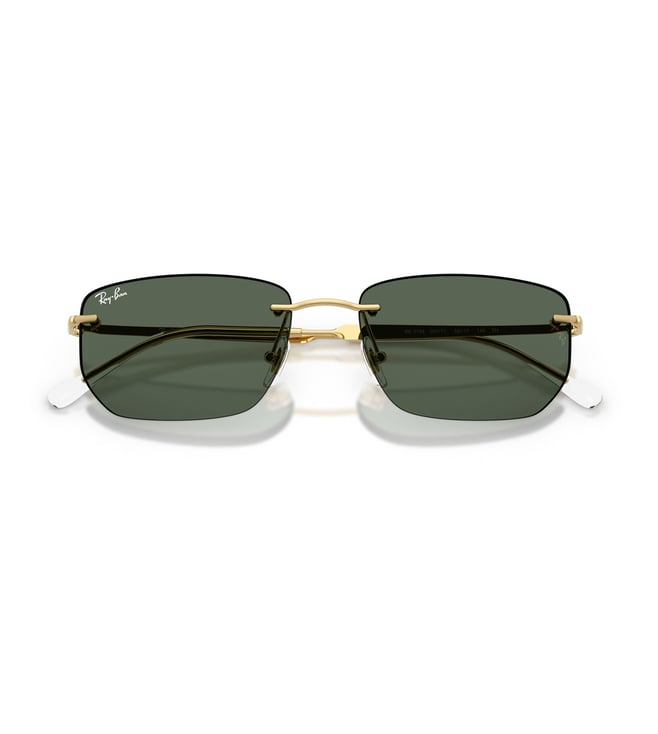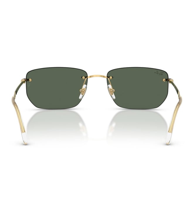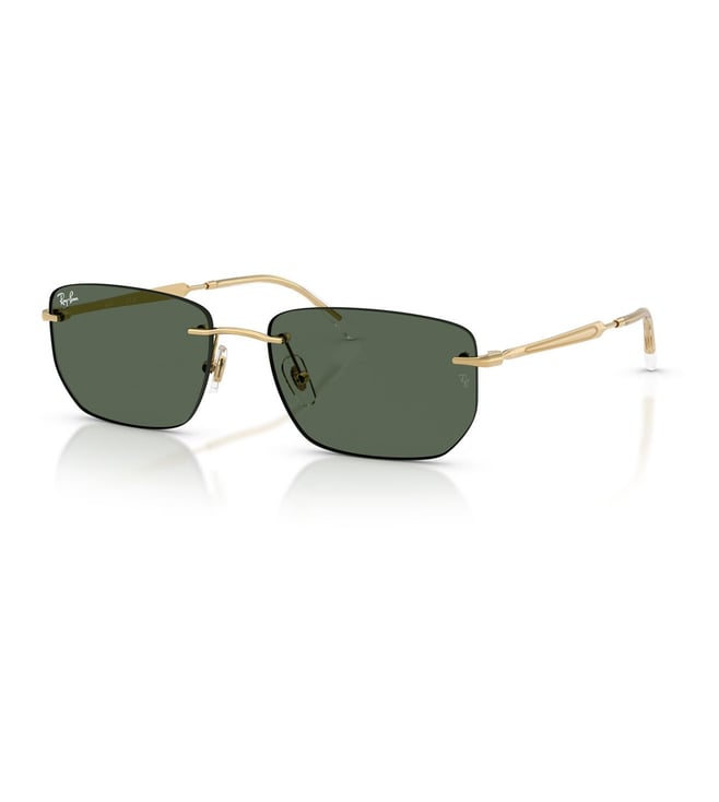 Upgraded with a magnetic design, this pair of Sunglasses from Ray-Ban will add a hint of style to your look. Fashioned from Metal, the lightweight frame vaunts a Gold hue. The Grey lenses are crafted with care from Plastic that not only lends you a smart look but also assures complete protection of your eyes. The Rimless design further magnifies its overall charm.