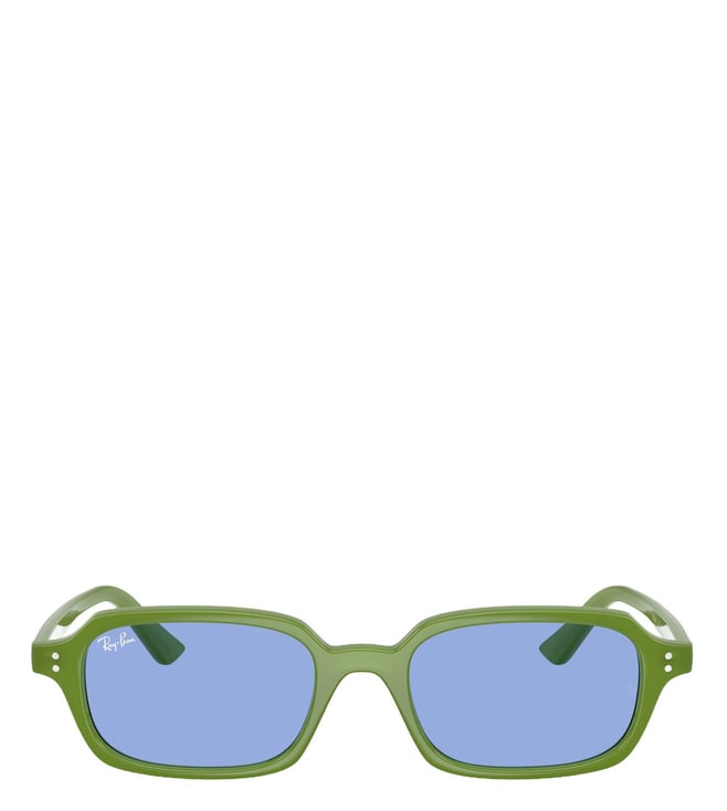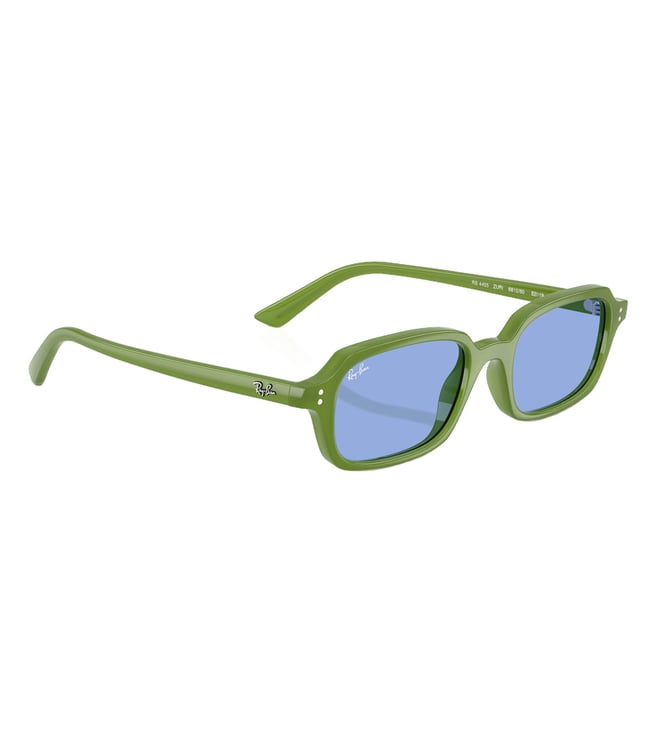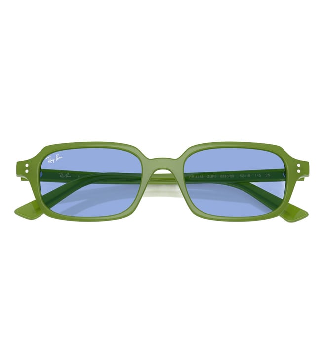 Redefine your look with this pair of Sunglasses from Ray-Ban. The Blue lenses are made with care from Polyamide that not only lends you a smart look but also assures complete protection of your eyes. Designed to perfection from Plastic, the Green-hued frame is light in weight. The Full Rim design further magnifies its overall charm.