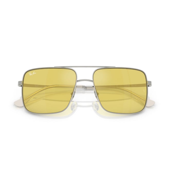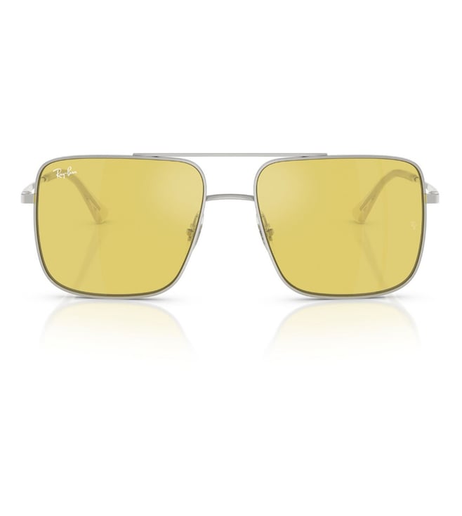 Fascinate one and all with this pair of Sunglasses from Ray-Ban, which will add a dash of extra charm to your look. Crafted with care from Metal, the Silver-hued frame is light in weight and assures maximum comfort. The Yellow lenses are made from Polyamide and ensure complete protection of your eyes. The Full Rim design adds to its overall appeal.