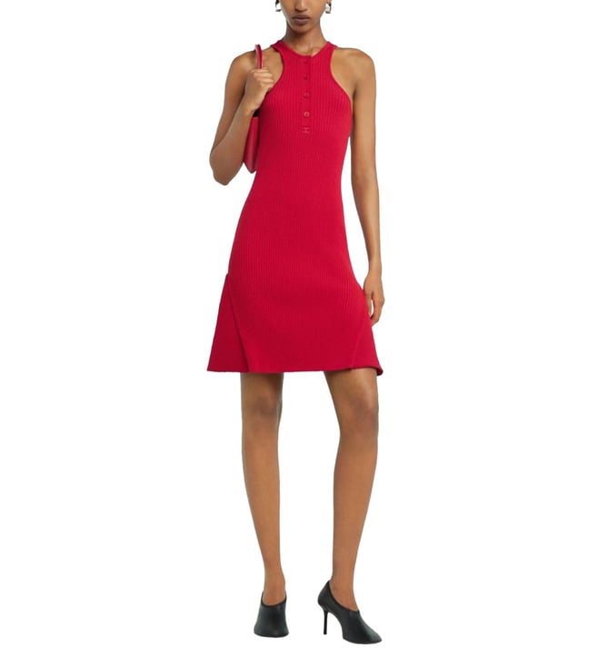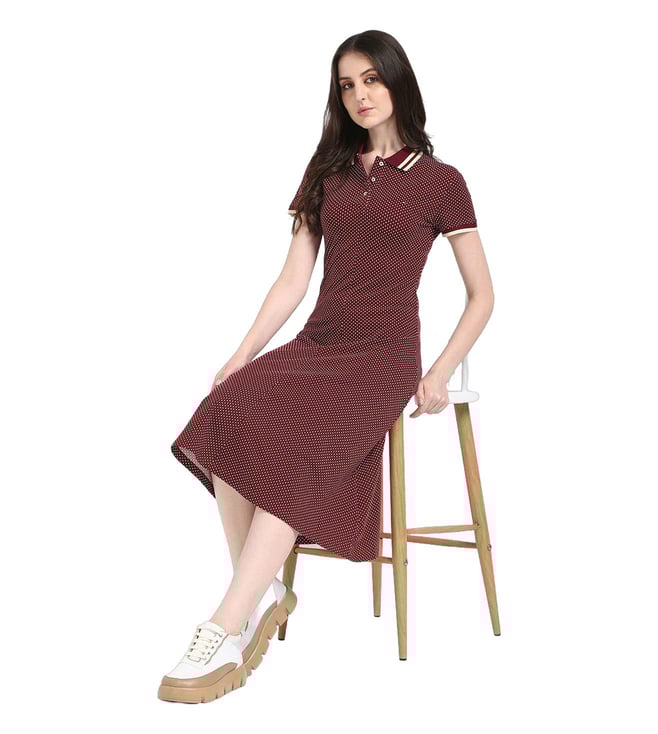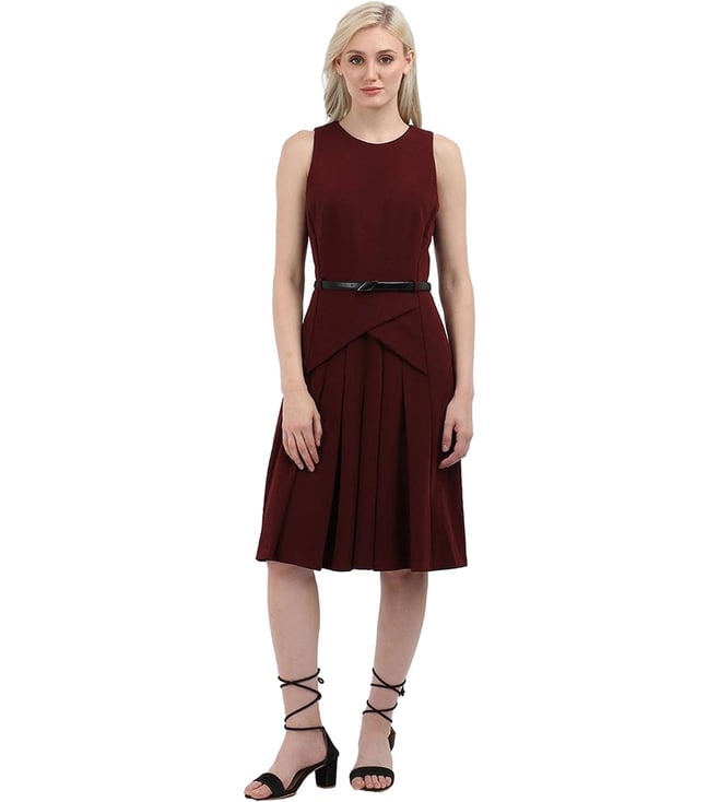 Red Polyester Round Neck A-Line Dress