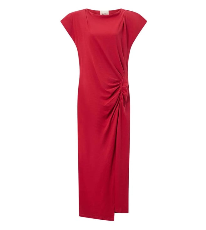 Red Silk Crepe Regular Fit Embroidery Casual Dress