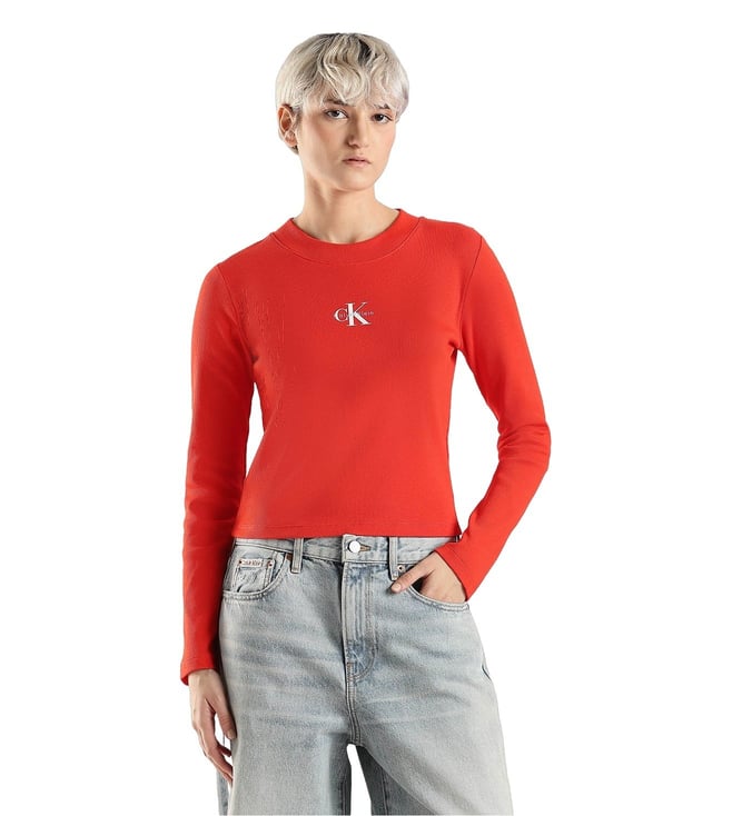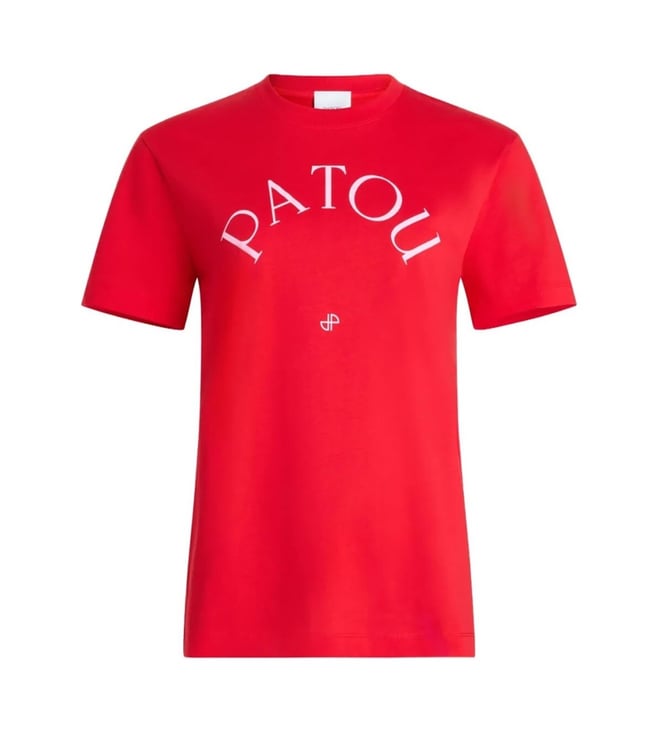 Red Cotton Regular Fit Logo Printed T-Shirt