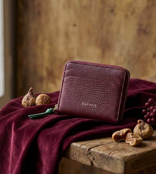 Maroon Upcycled Leather 3 Card Slot RFID Bi-Fold Wallet