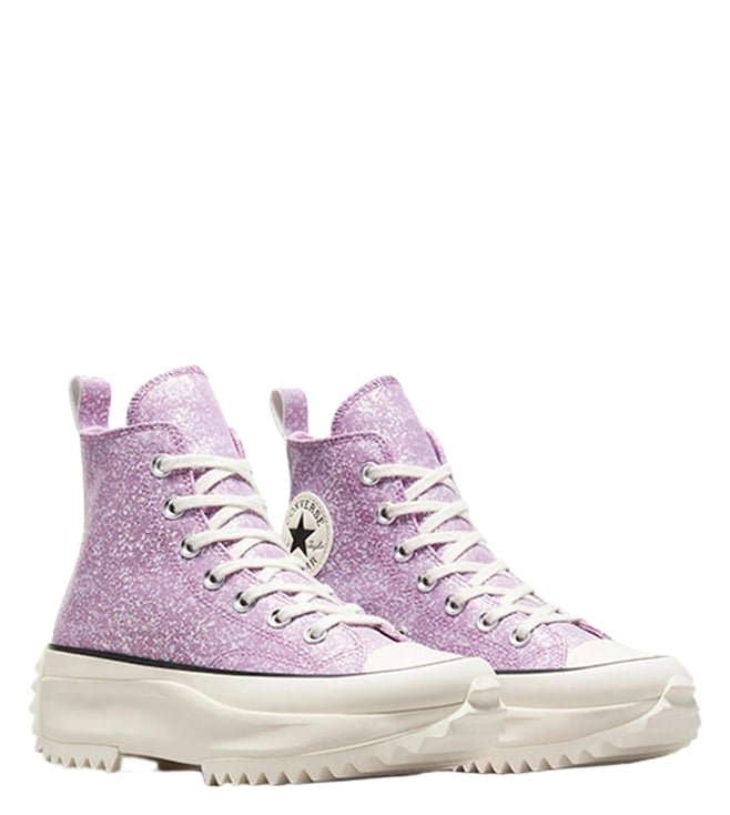 Women's Run Star Hike Platform Glitter High Top Purple Sneakers