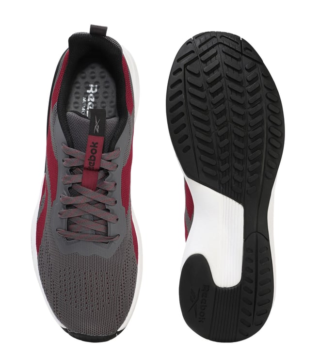 Demonstrate a forceful style with this comfortable pair of running shoes from Reebok. This pair comes with a synthetic upper and its sole is made of premium quality rubber to ensure longevity. It comes with an EVA midsole for gripping, extra cushioning, abrasion-resistant and durability of the shoe. The Memory Tech massage footbed forms the unique contours of your feet and provides you with immediate comfort and lasting cushioning.