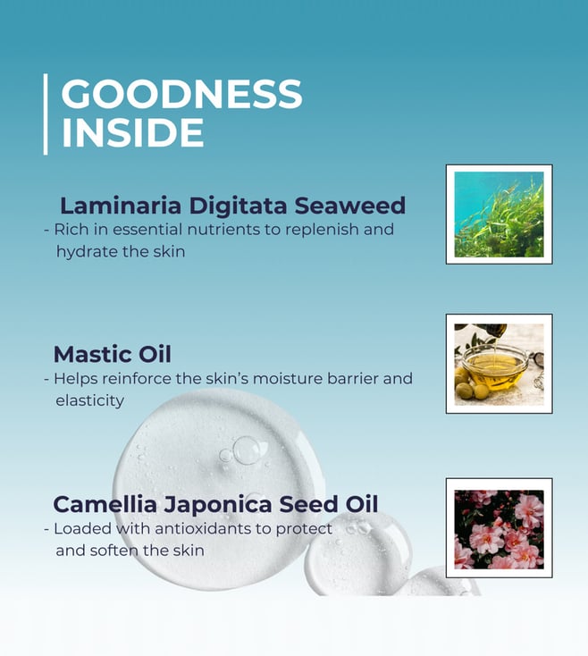 Water/Aqua/Eau, Glycerin, Glyceryl Polyacrylate, Propanediol, Pistacia Lentiscus (Mastic) Gum Water, Pentylene Glycol, Saccharide Isomerate, Sodium Hyaluronate, Hydrolyzed Sodium Hyaluronate, Laminaria Digitata Extract, Chamomilla Recutita (Matricaria) Flower Extract, Salvia Officinalis (Sage) Leaf Extract, Tussilago Farfara (Coltsfoot) Flower Extract, Melissa Officinalis Leaf Extract, Equisetum Arvense Extract, Rosmarinus Officinalis (Rosemary) Leaf Extract, Epilobium Angustifolium Flower/Leaf/Stem Extract, Kappaphycus Alvarezii Extract, Caesalpinia Spinosa Fruit Extract, Acrylates/C10-30 Alkyl Acrylate Crosspolymer, Tetrasodium Glutamate Diacetate, Potassium Sorbate, Sodium Citrate, Citric Acid, Sodium Hydroxide, Ethylhexylglycerin, Phenoxyethanol