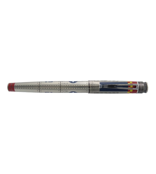 P-51 Mustang Tornado Fountain Pen, inspired by Tuskegee Airmen¿s Red Tails. Acid-etched with rivets, stonewash pewter finish, and red markings. Convertible to rollerball, perfect for history buffs.