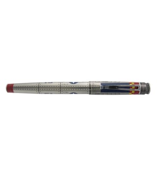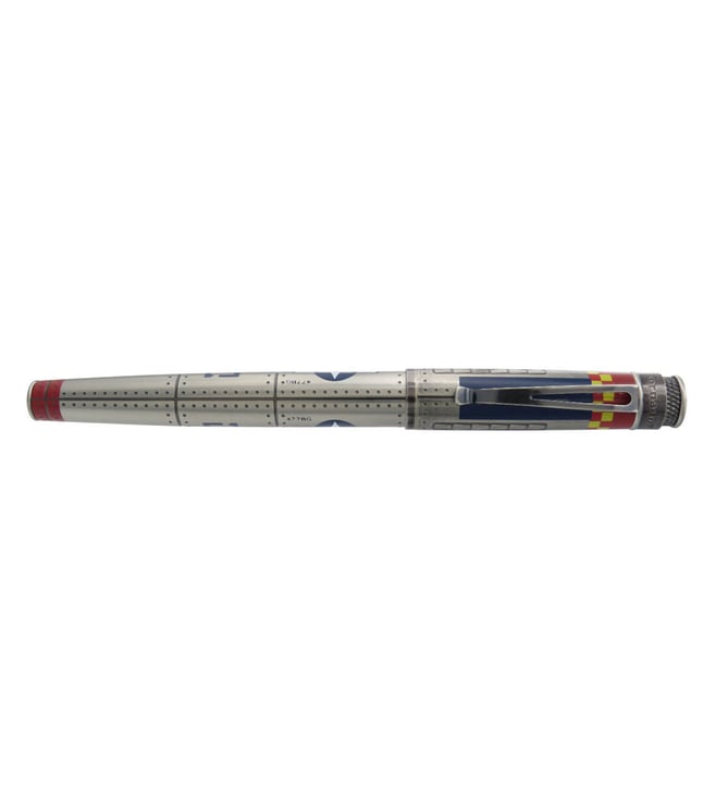 P-51 Mustang Tornado Fountain Pen, inspired by Tuskegee Airmen¿s Red Tails. Acid-etched with rivets, stonewash pewter finish, and red markings. Convertible to rollerball, perfect for history buffs.