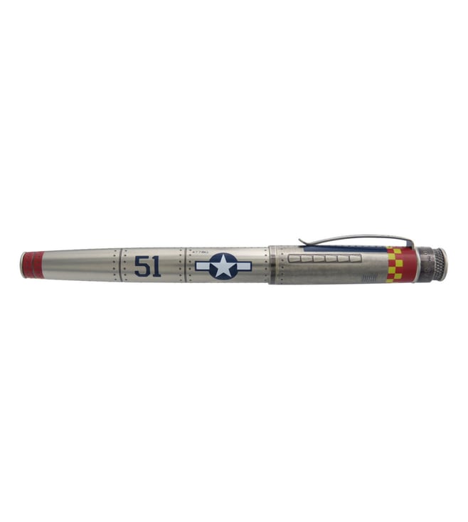 P-51 Mustang Tornado Fountain Pen, inspired by Tuskegee Airmen¿s Red Tails. Acid-etched with rivets, stonewash pewter finish, and red markings. Convertible to rollerball, perfect for history buffs.