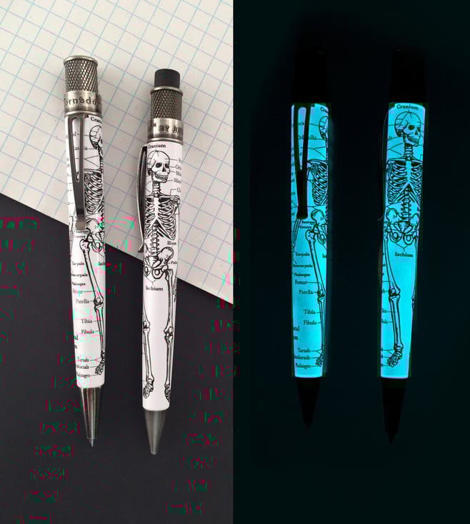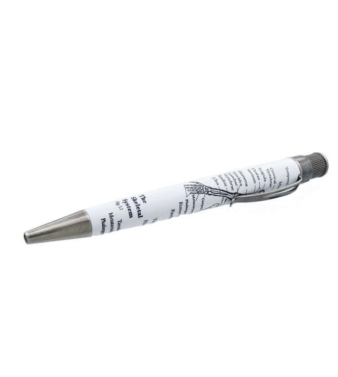 The ¿Dr. Gray¿ rollerball will help with your anatomy lessons, as it ties to Dr. Henry Gray, as well as his book on human anatomy. Each pen features in white printed with a black Dr. Gray skeleton on an acid-etched lacquer finish barrel that is highlighted with antique silver accents.