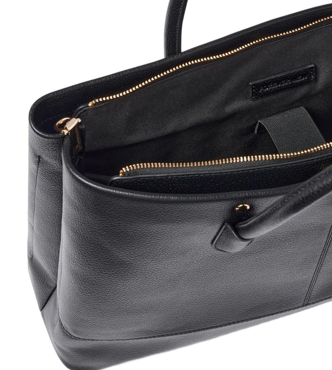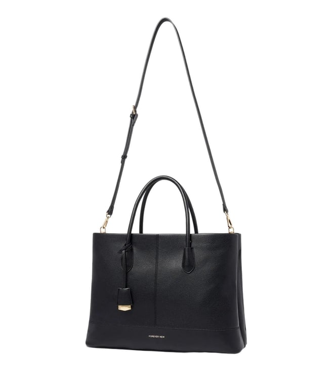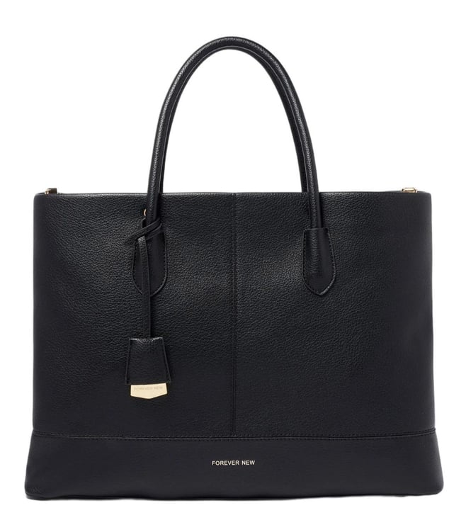 Elevate your style with the rhea laptop tote bag from forever new. Crafted from high-quality faux leather with gold-tone hardware, this tote features a zip closure, top carry handles, and a detachable adjustable strap for versatility. The interior boasts an elasticated laptop holder and a debossed forever new logo. With its sleek design and spacious dimensions, this vegan-friendly tote is perfect for work or play. Stay organized and chic with the rhea laptop tote bag.