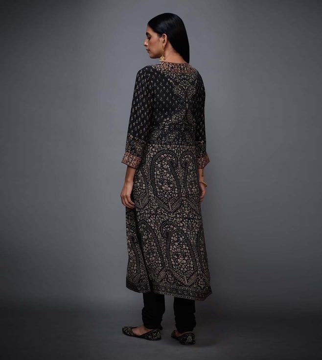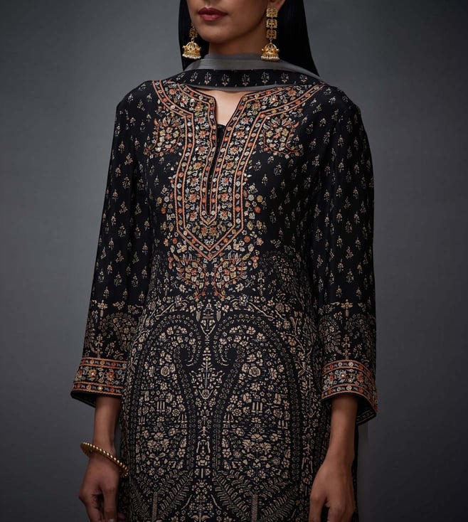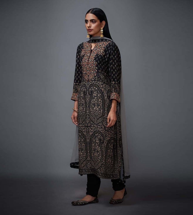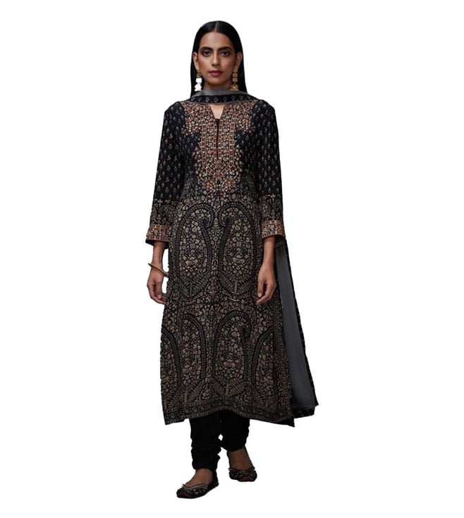 RI.Ritu Kumar Black & Beige Regular Fit Kurta and Churidhar Set with Dupatta