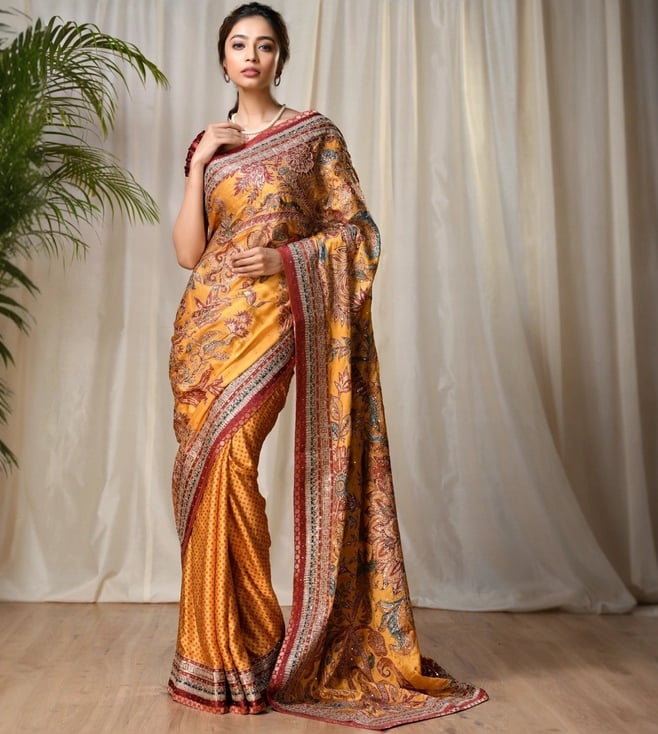 Draped Saree with Stitched Blouse and Embroidered Belt
