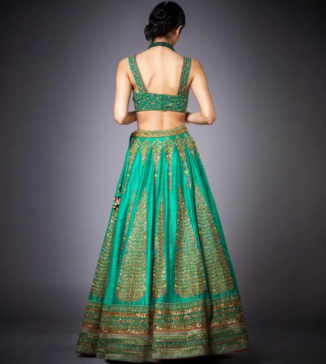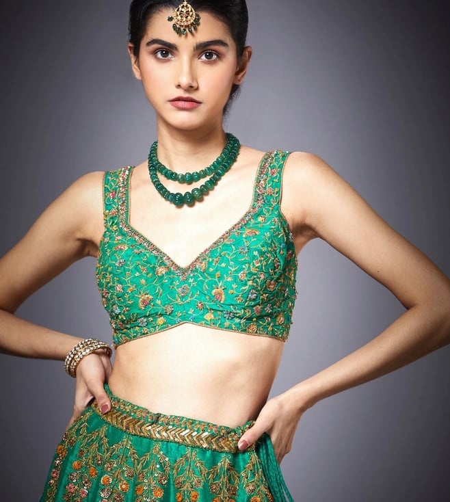 Get ready to be overwhelmed with a flurry of compliments by wearing this blouse with lehenga and dupatta from RI.Ritu Kumar. Tailored to sartorial perfection from silk dupion, it assures a soft and soothing touch against the skin. The embroidery work speaks for its ornate artistry. Country of Origin - India. Disclaimer: Product colour may slightly vary due to photographic lighting sources.