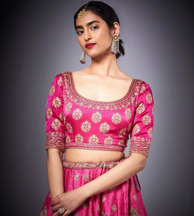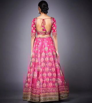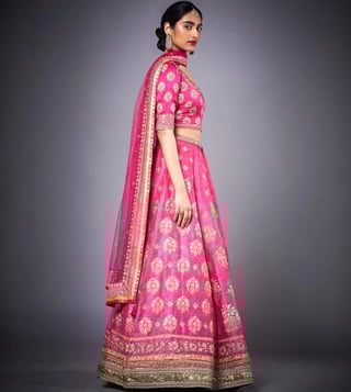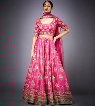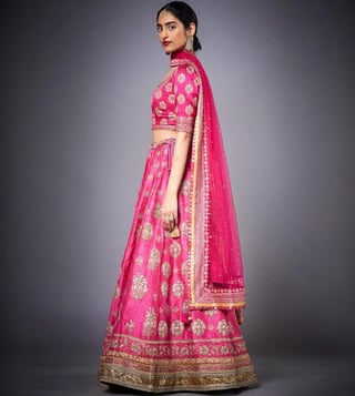 RI.Ritu Kumar Fuchsia & Gold Embroidered Lehenga Set