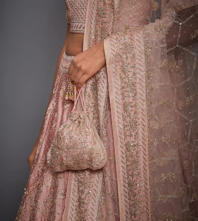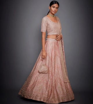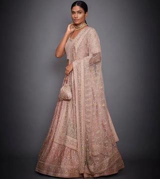 RI.Ritu Kumar Peach Embroidered Lehenga Set