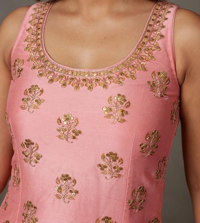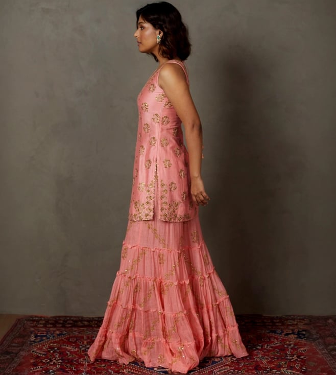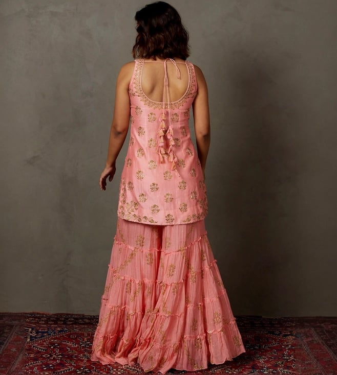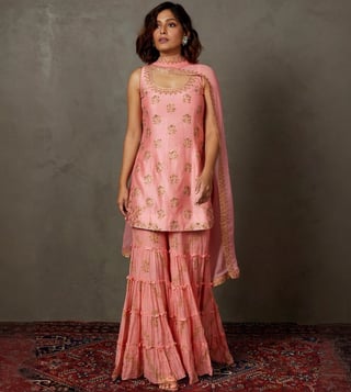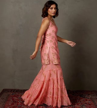 RI.Ritu Kumar Pink Machine and Hand Embellished Manjhi Kurta with Garara and Dupatta
