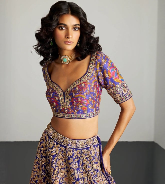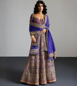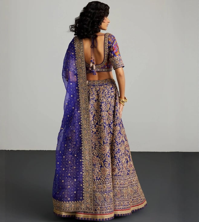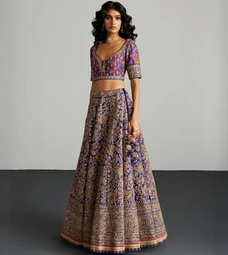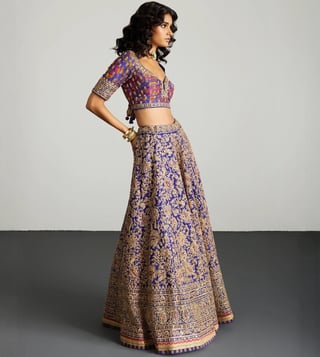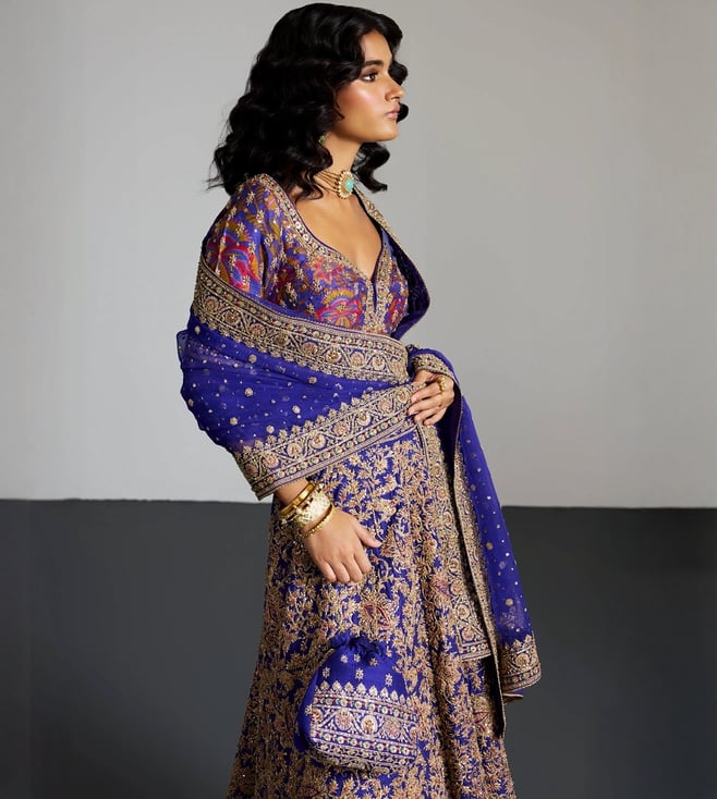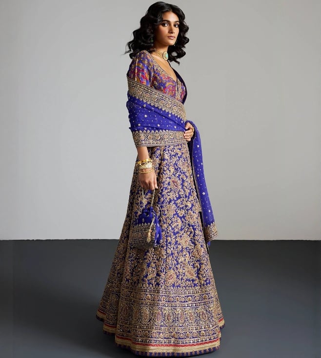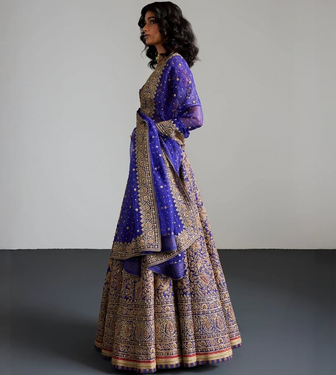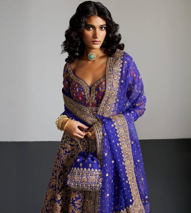RI.Ritu Kumar Purple & Gold Alaknanda Lehenga With Blouse and Dupatta, Potli