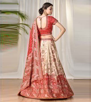 Red & Beige Embroidered Lehenga Set