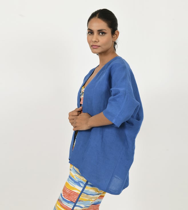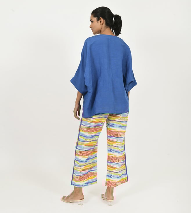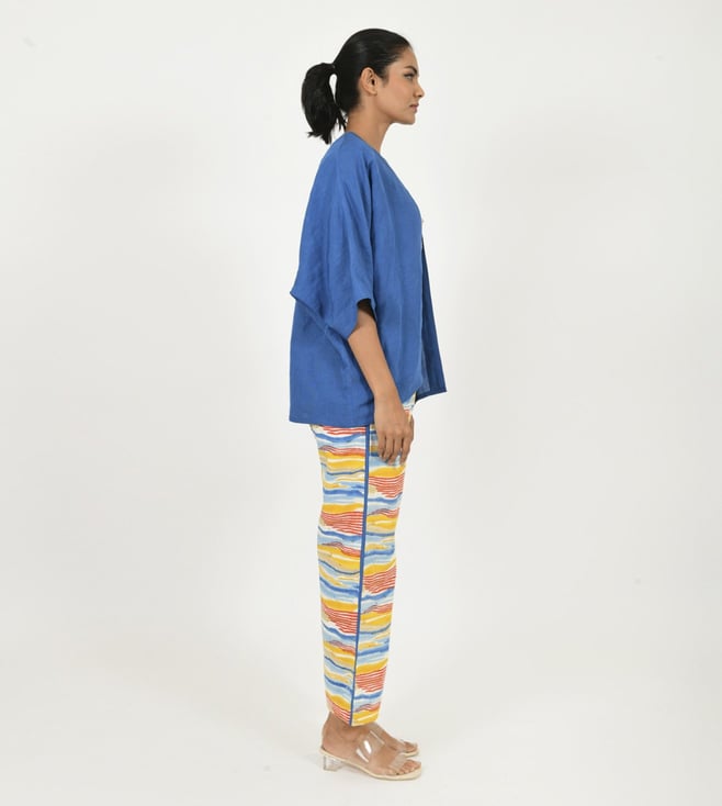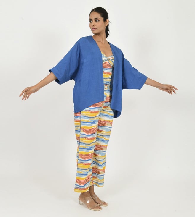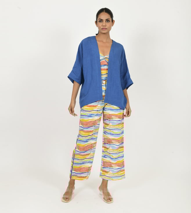 RIAS JAIPUR Classic Blue & Multicolor Yaadein Wave Jacket and Top with Pant