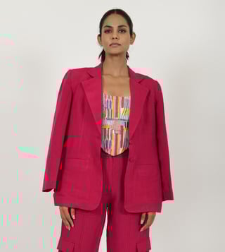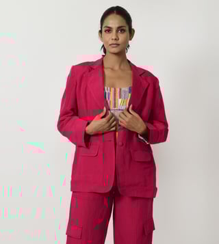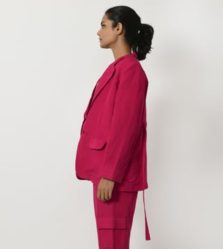 RIAS JAIPUR Viva Magenta Yaadein Linen Cargo Jacket