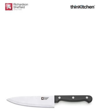 This set of 1 15 cm cooks knife is from the Artisan collection by Richardson Sheffield. It is a modern classic made for everyday use. With oversized rivets, the ergonomically designed handle is a joy to behold. The blade back is rounded for optimum cutting comfort. It comes with a handle with front and rear guards.