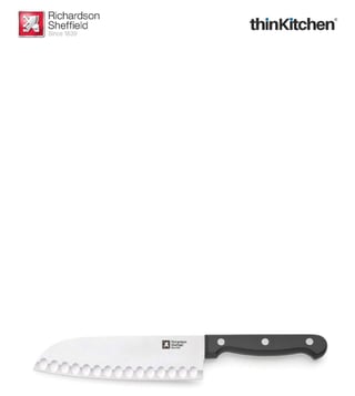 This set of 1 17.5 cm santoku knife is from the Artisan collection by Richardson Sheffield. It is a modern classic made for everyday use. With oversized rivets, the ergonomically designed handle is a joy to behold. The blade back is rounded for optimum cutting comfort. It comes with a handle with front and rear guards.