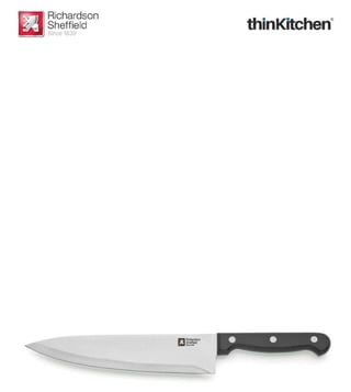 This set of 1 20 cm cooks knife is from the Artisan collection by Richardson Sheffield. It is a modern classic made for everyday use. With oversized rivets, the ergonomically designed handle is a joy to behold. The blade back is rounded for optimum cutting comfort. It comes with a handle with front and rear guards.