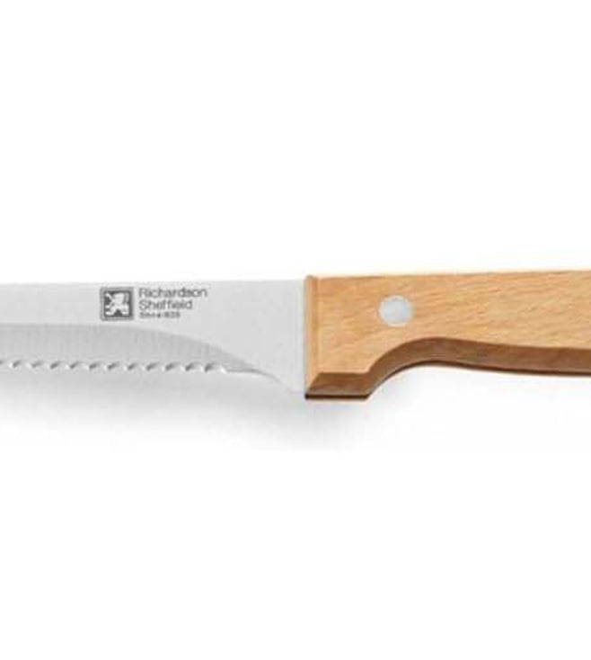 This set of 1 steak knife is from the Artisan collection by Richardson Sheffield. It is a modern classic made for everyday. With oversized rivets, the ergonomically designed handle is a joy to behold. Get it for your professional kitchen experiences.