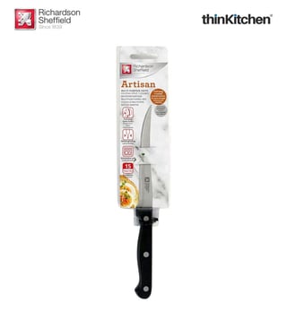 This set of 1 vegetable knife is from the Artisan collection by Richardson Sheffield. It is a modern classic made for everyday. With oversized rivets, the ergonomically designed handle is a joy to behold. The blade back is rounded for optimum cutting comfort. It has a 3 rivet handle with front and rear guard.
