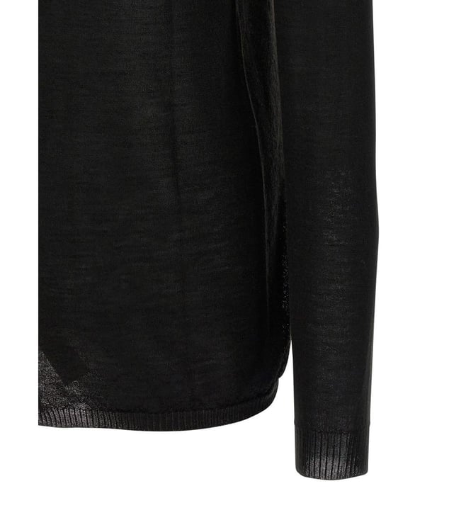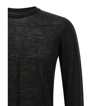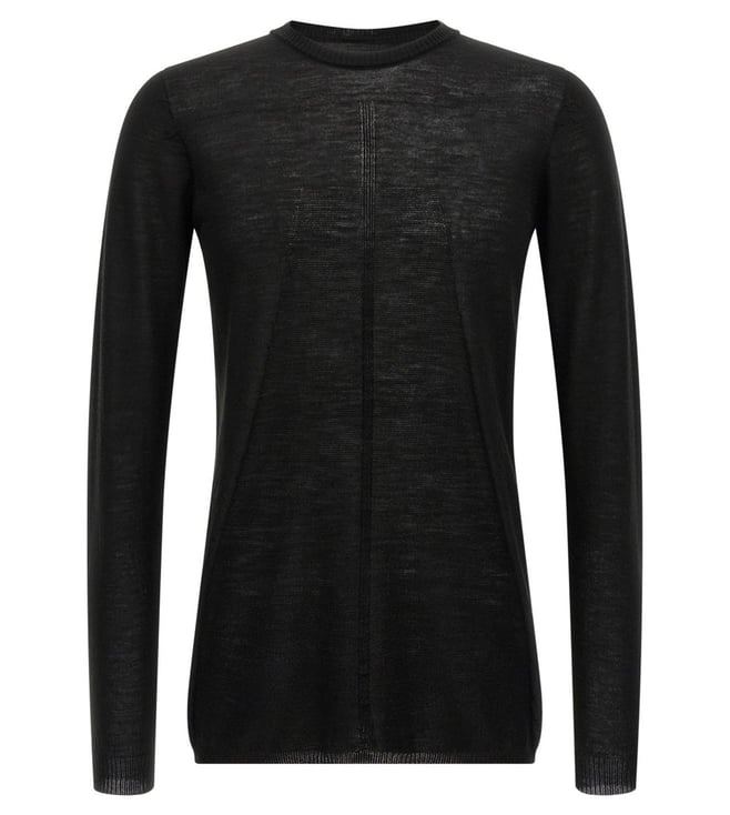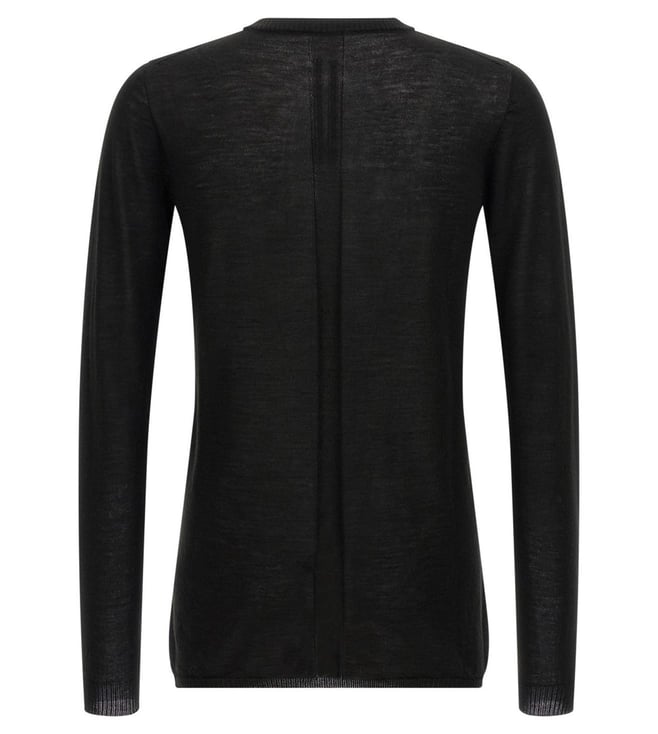 Biker level lightweight wool sweater with ribbed details, crew neck, long cuffed sleeves, true to size fit.