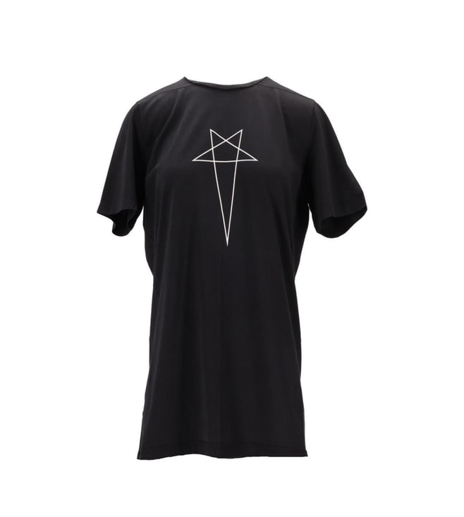 The Rick Owens Black Crewneck Long T-Shirt is a masterpiece of minimalist elegance, crafted for the modern woman. Its regular fit drapes effortlessly, offering a sleek silhouette that flatters every form. The deep black hue exudes sophistication, while the 100% cotton fabric ensures comfort and breathability. This versatile piece features a classic crewneck and a seamless closure, making it a timeless addition to any wardrobe. Perfect for layering or as a standalone statement, it embodies understated luxury.