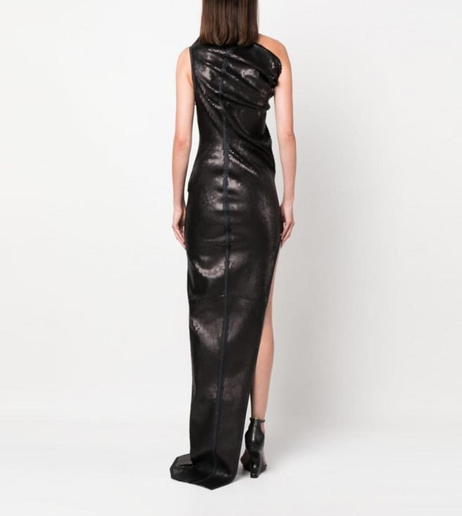 Rick Owens Black Embroide Denim Long Embellished Dress