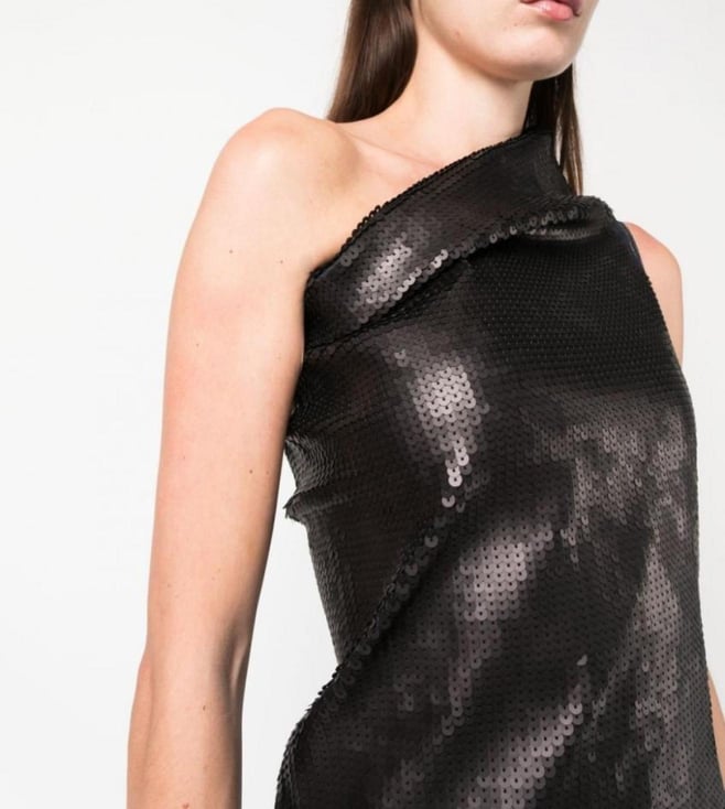 Unleash your inner diva with this stunning black denim dress, a masterpiece of modern fashion. The embellished pattern adds a touch of glamour, making it perfect for any occasion. Its sleeveless, one-shoulder design exudes elegance and confidence, while the blend of polyester, cotton, spandex, and rubber ensures a comfortable, flattering fit. The dress's unique closure enhances its chic appeal, making it a must-have for the fashion-forward woman who dares to stand out.