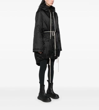 The Rick Owens Black Jacket is a masterful blend of avant-garde design and timeless elegance. Crafted from luxurious, supple leather, it exudes an air of rebellious sophistication. Its asymmetrical zipper and exaggerated lapels create a striking silhouette, while the tailored fit hugs the body with precision. The jacket's deep, inky black hue adds an element of mystery, making it a versatile statement piece. With its edgy yet refined aesthetic, this jacket embodies the essence of modern urban chic.
