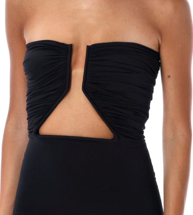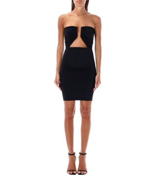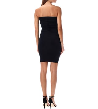 Unveil elegance with this stunning black dress, a masterpiece of modern design. Crafted from a luxurious blend of 91% nylon and 9% elastane, it offers a sleek, form-fitting silhouette that accentuates every curve. The solid black hue exudes timeless sophistication, while its sleeveless, strapless cut adds a daring edge. Perfect for any occasion, this dress is a testament to understated glamour, ensuring you make a memorable entrance with its seamless closure and impeccable fit.