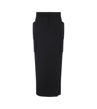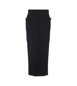 Elevate your wardrobe with the Rick Owens Black Straight Fit skirt. Designed with cargo pockets, high waist, straight hem, midi length. these trousers combine comfort and sophistication for everyday wear. Products purchased from Darveys are supported exclusively by the warranty/exchange policies of Darveys and its partner boutiques. Brand owners and their channel partners are not responsible for exchange/warranty services for items purchased through Darveys.