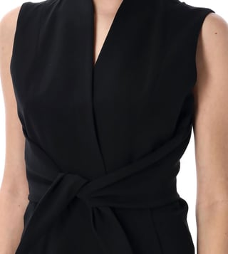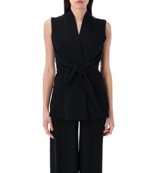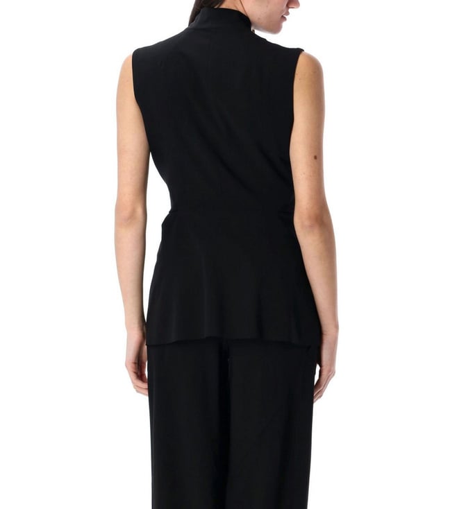 The Rick Owens Black Structured Sleeveless Top is a masterpiece of modern design, exuding an avant-garde allure. Crafted from 100% wool, this slim-fit piece drapes elegantly, offering a sleek silhouette that flatters the form. Its deep black hue enhances its sophisticated appeal, while the absence of closures ensures a seamless, minimalist aesthetic. Perfect for the contemporary woman, this top is a bold statement of style and confidence, embodying the essence of cutting-edge fashion.