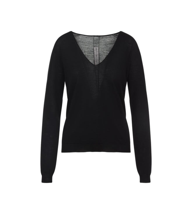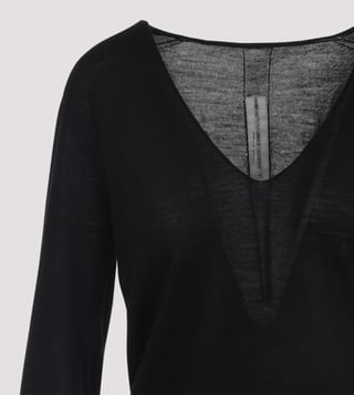 Rick Owens Black Wool V-Neck Pullover