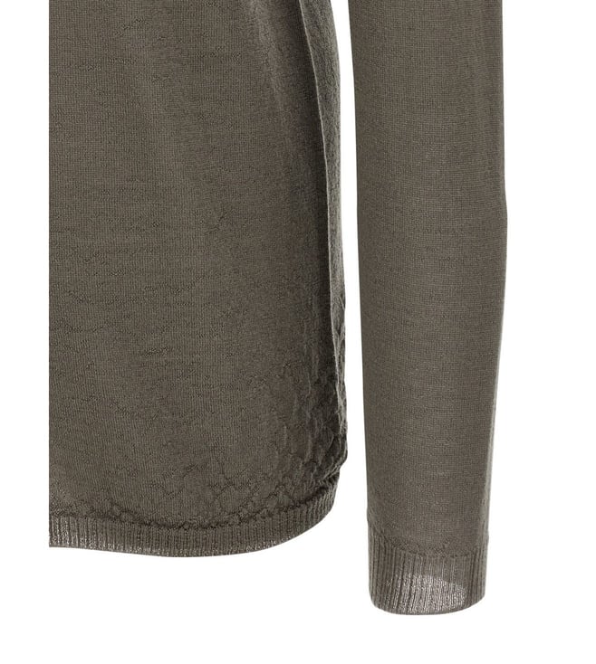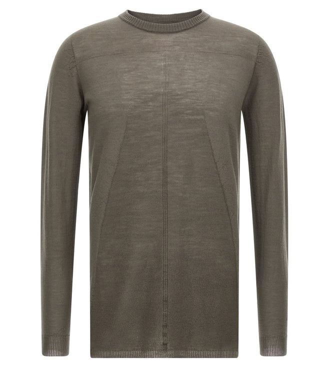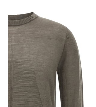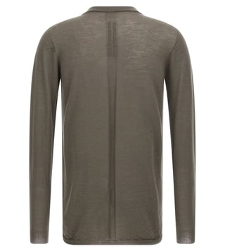 Biker level lightweight wool sweater with ribbed details, crew neck, long cuffed sleeves, true to size fit.